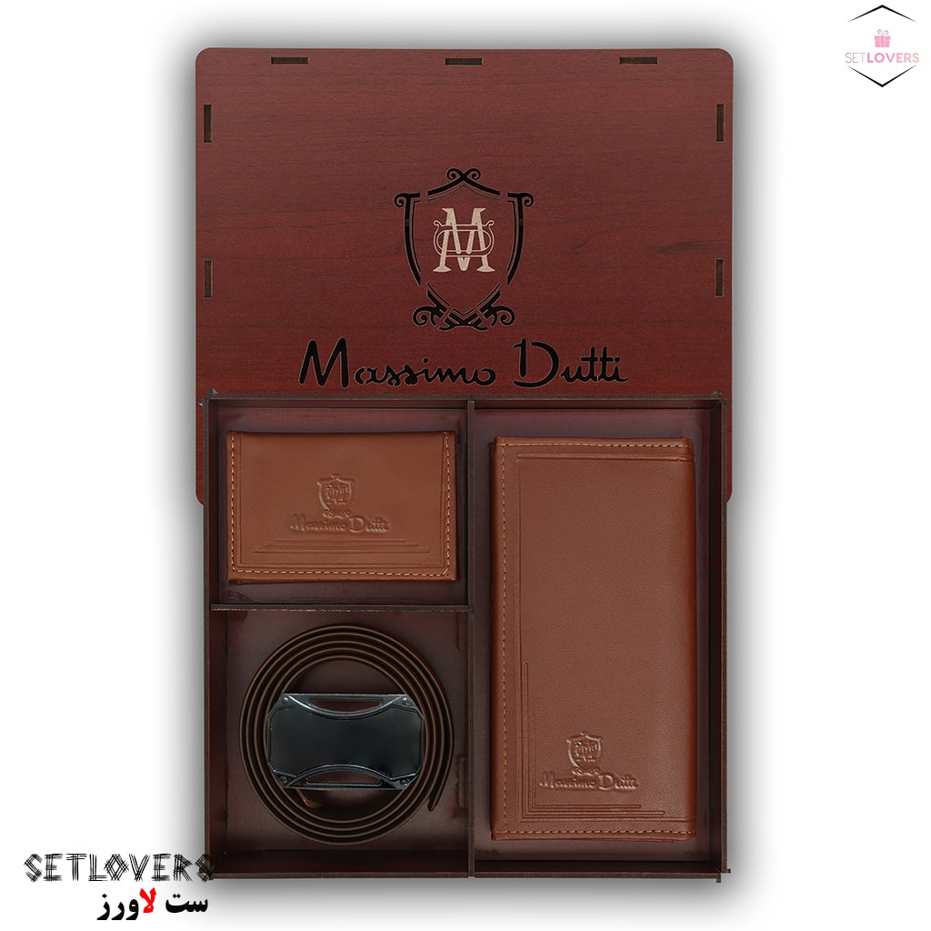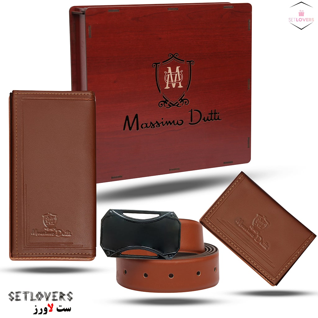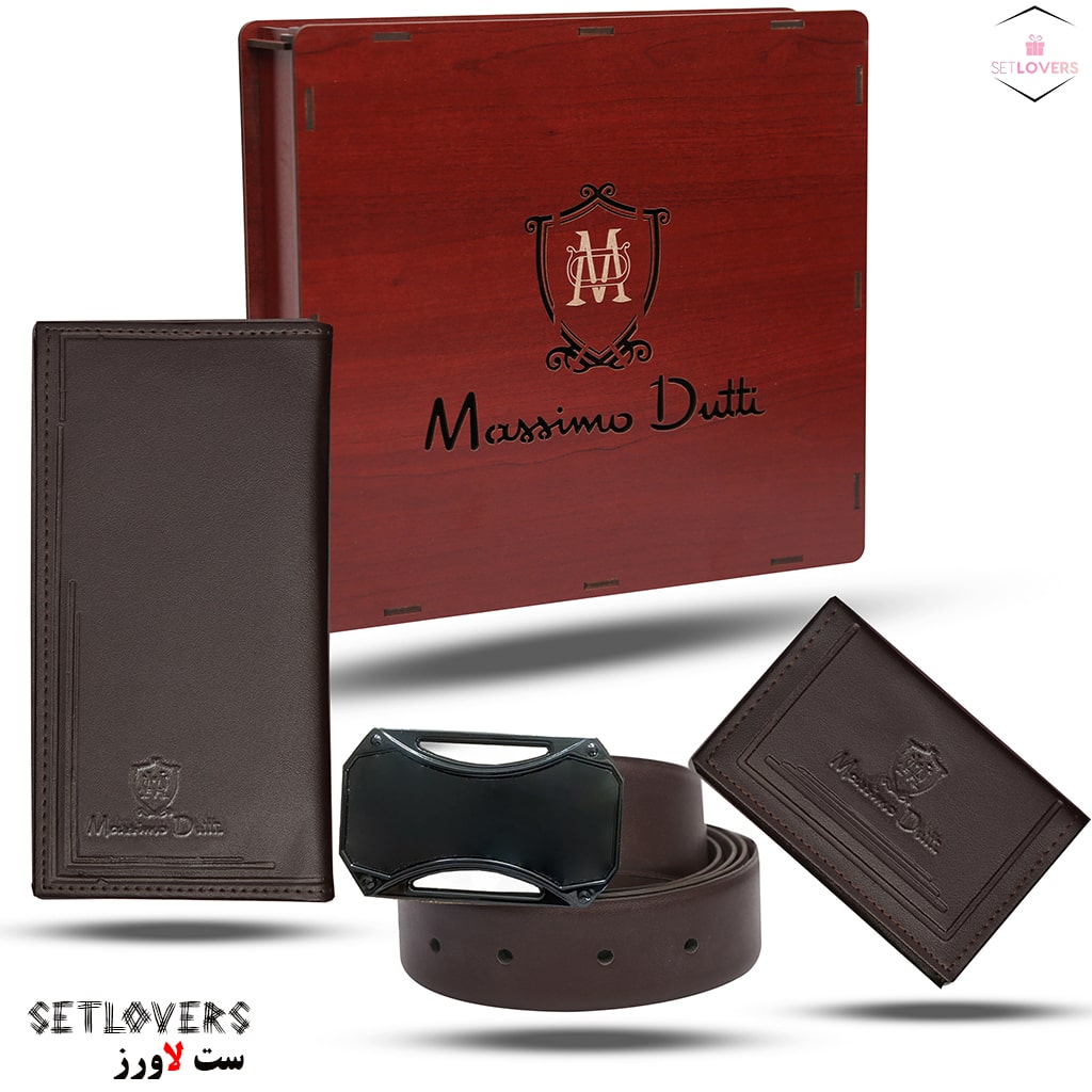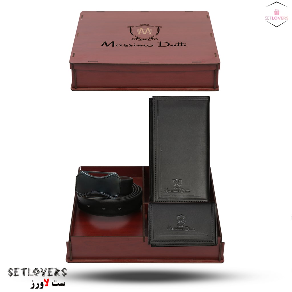ست سه تیکه کیف بلند چرم صنعتی درجه یک با جعبه چوبی ماسیمودوتی کد 1178