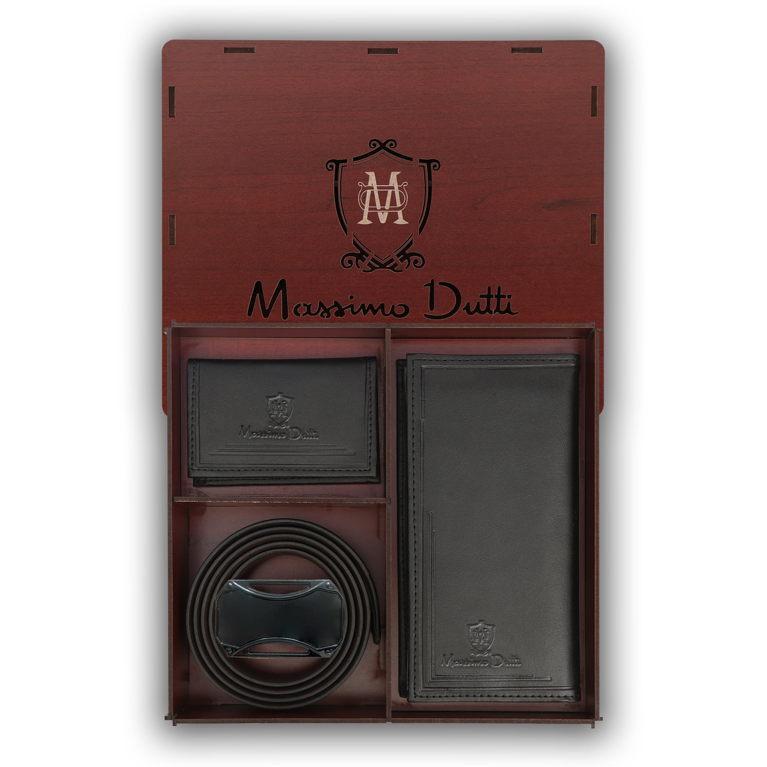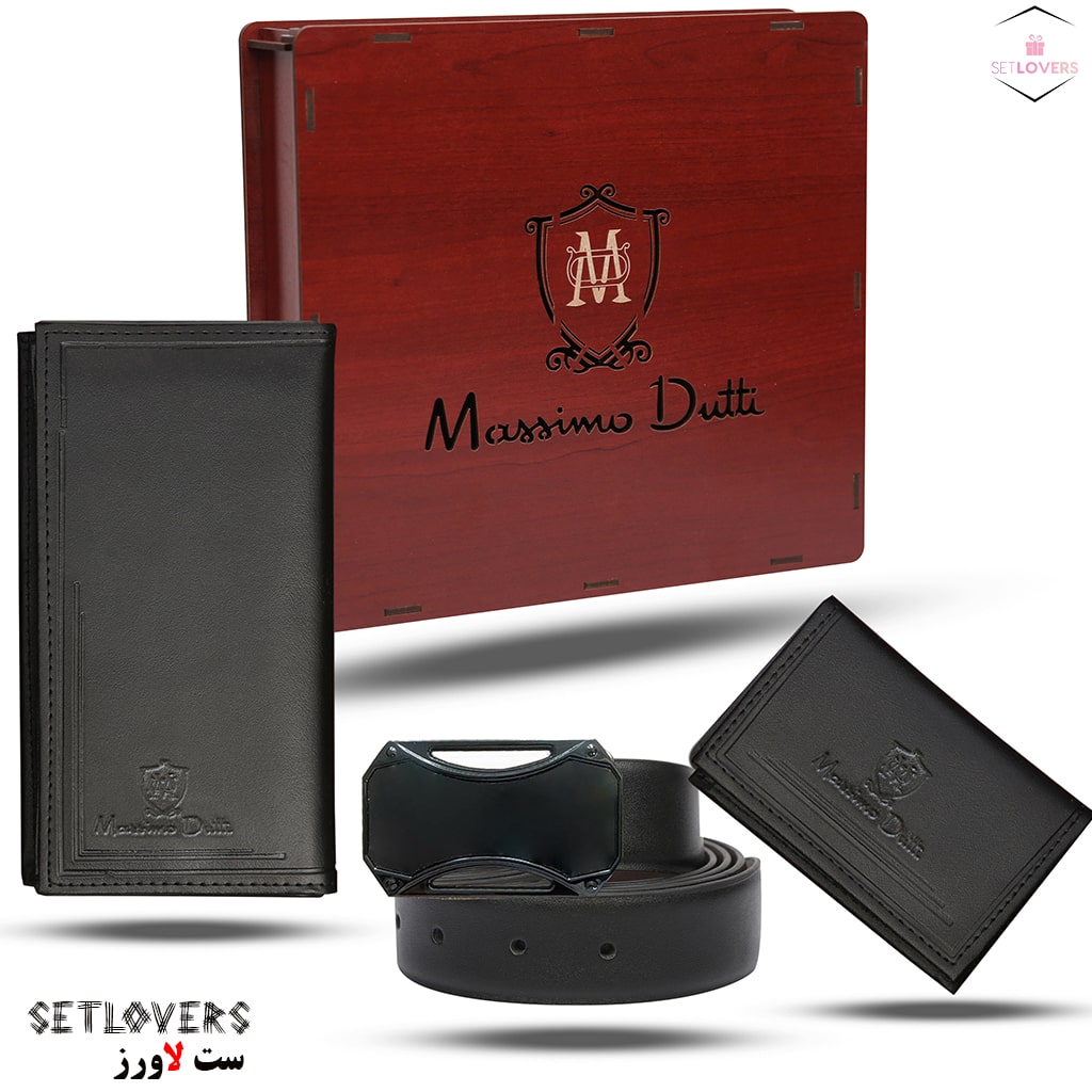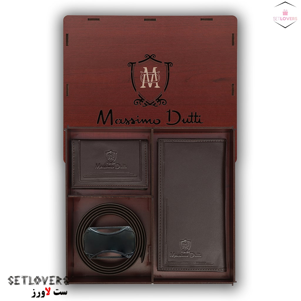 ست سه تیکه کیف بلند چرم صنعتی درجه یک با جعبه چوبی ماسیمودوتی کد 1178